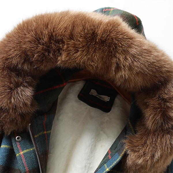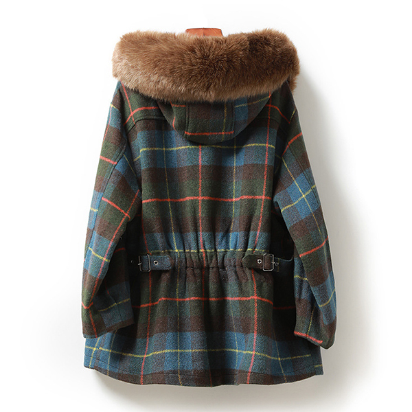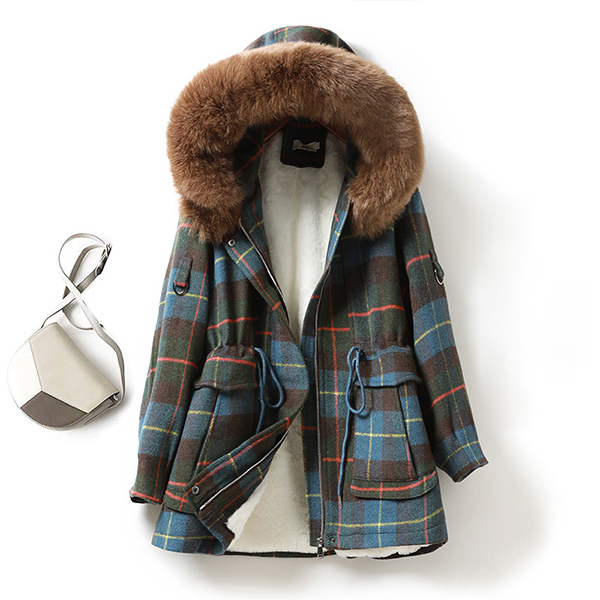 Warm Cotton Coat Velvet Plaid Design with Waisted Cotton