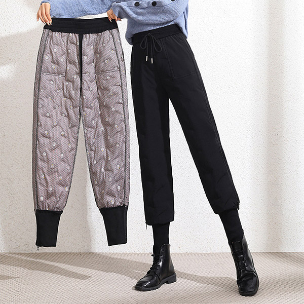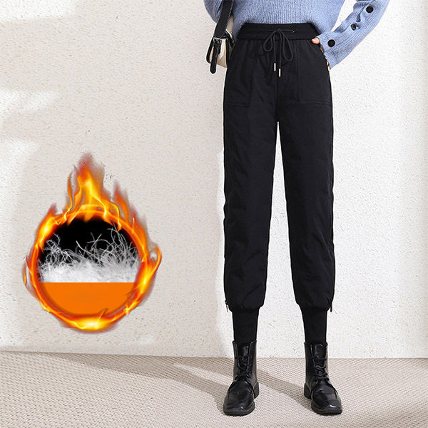 Warm Plush Lined Warm Cotton Trousers with Side Zipper