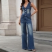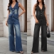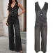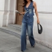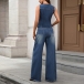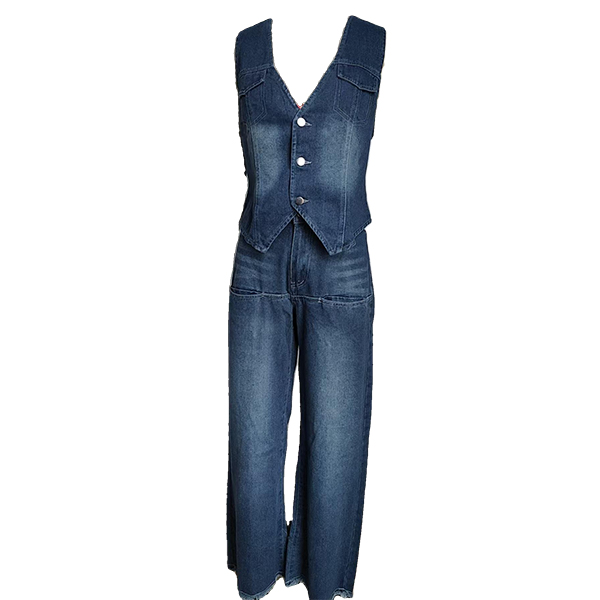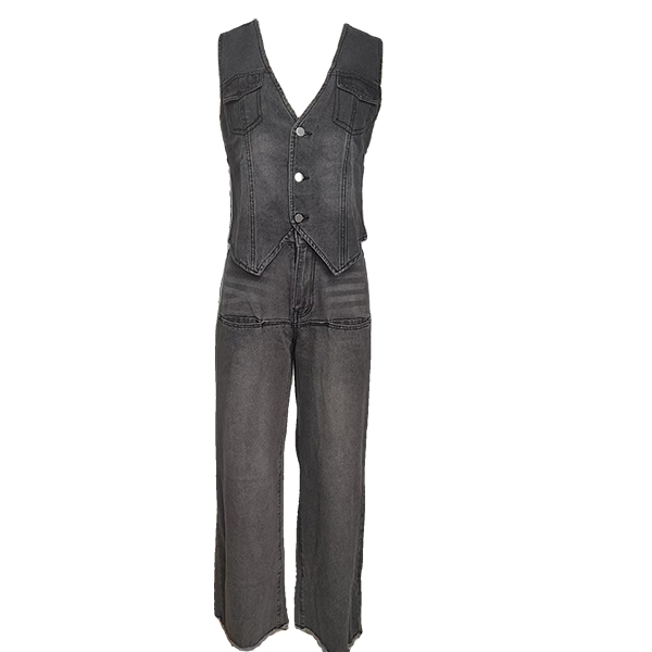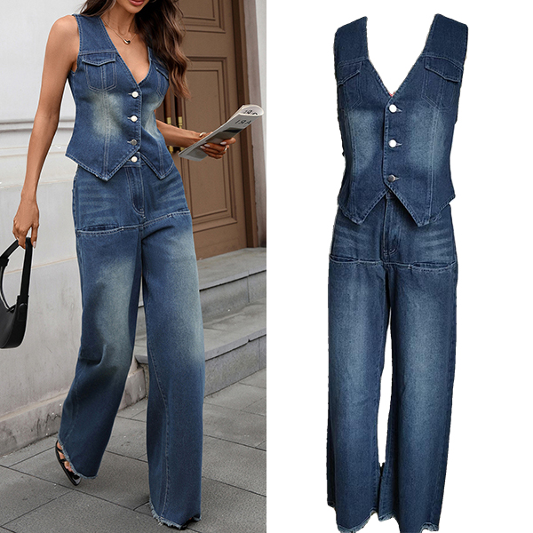 Washed Denim Vest and Slim Flared Jeans Set