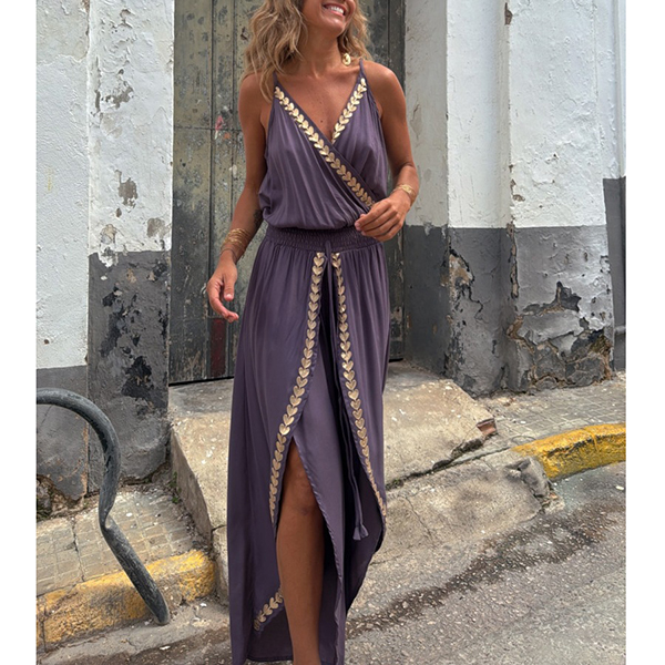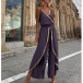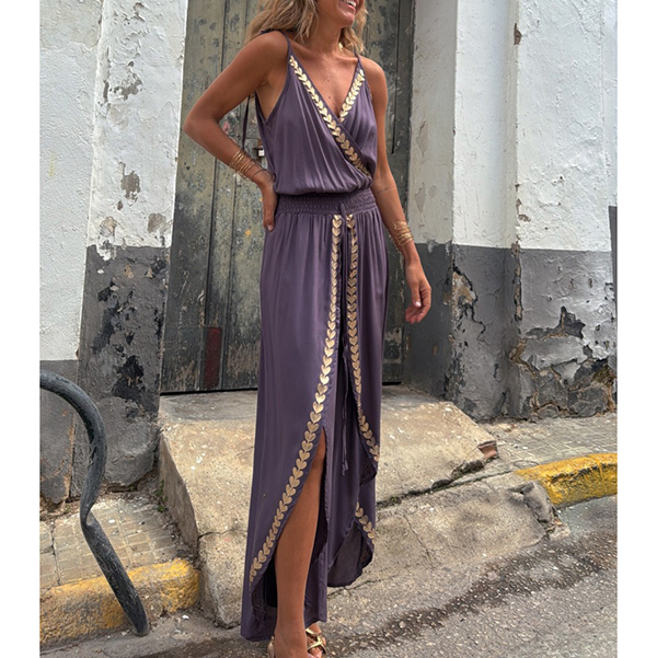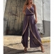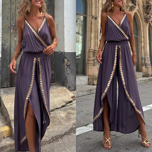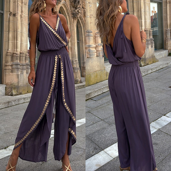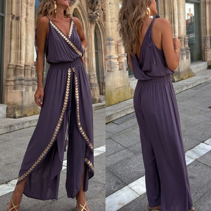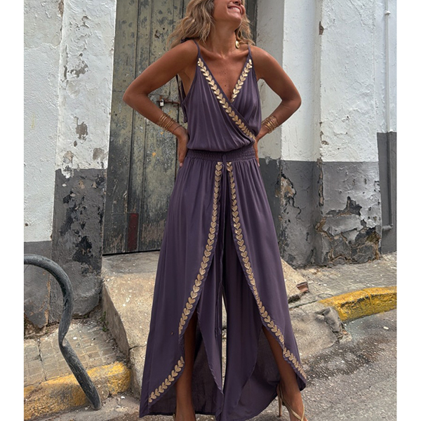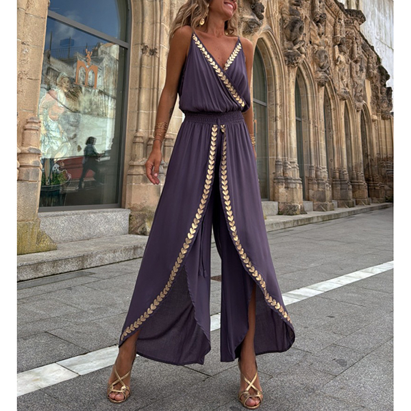Bohemia Style V-neck Printed Slit Loose Jumpsuit
