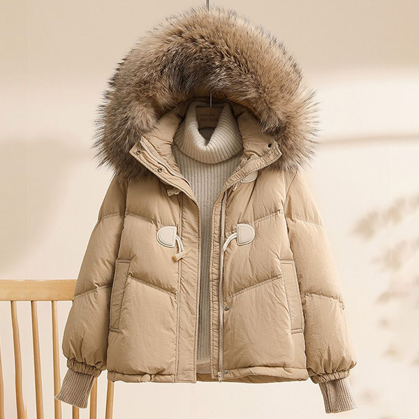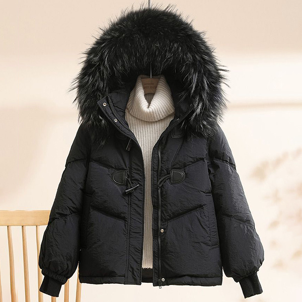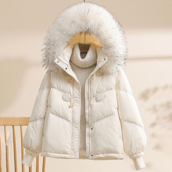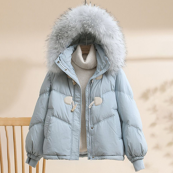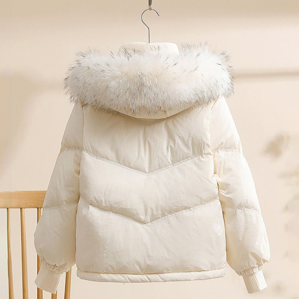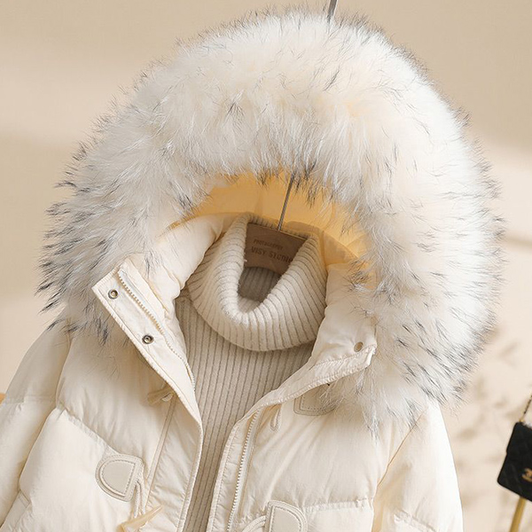 White Duck Down Jacket Loose Fit with Thick Warmth and Raccoon Big Fur Collar