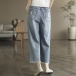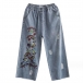 Wide Leg Ripped Jeans Embroidered Raw Edge Nine-Point Wash White Loose Fit Pants