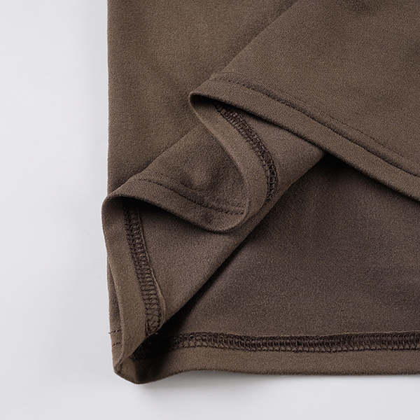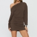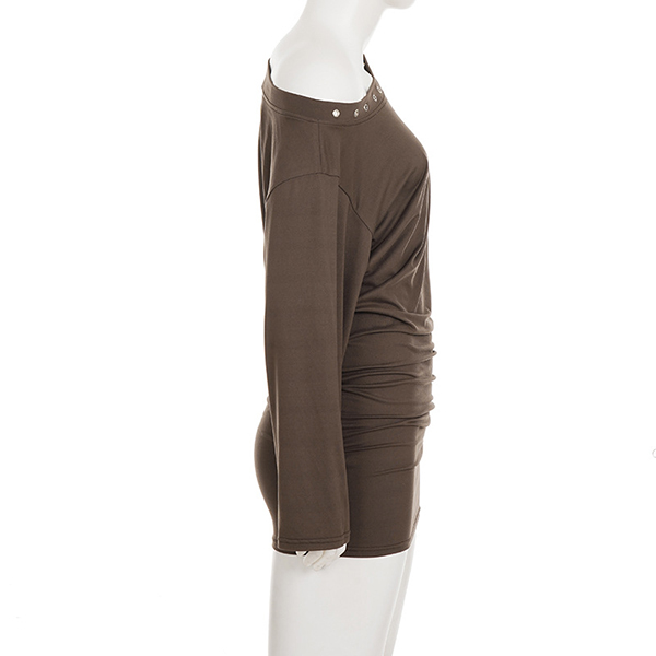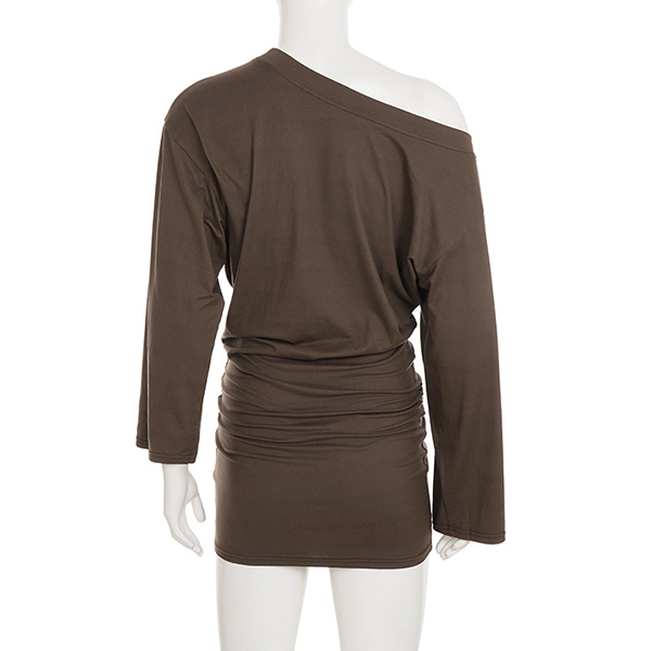 Elevate your casual wardrobe with this chic mocha-colored mini dress. Combining a relaxed top with a fitted skirt, it offers the perfect balance of comfort and style.