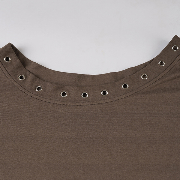 Edgy Grommet Detail: The neckline is accented with silver-tone metal eyelets, transforming a simple dress into a statement piece.