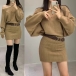 Women's Asymmetric Slant Neckline Sweater Dress - Long Sleeve Batwing Bodycon with Belt