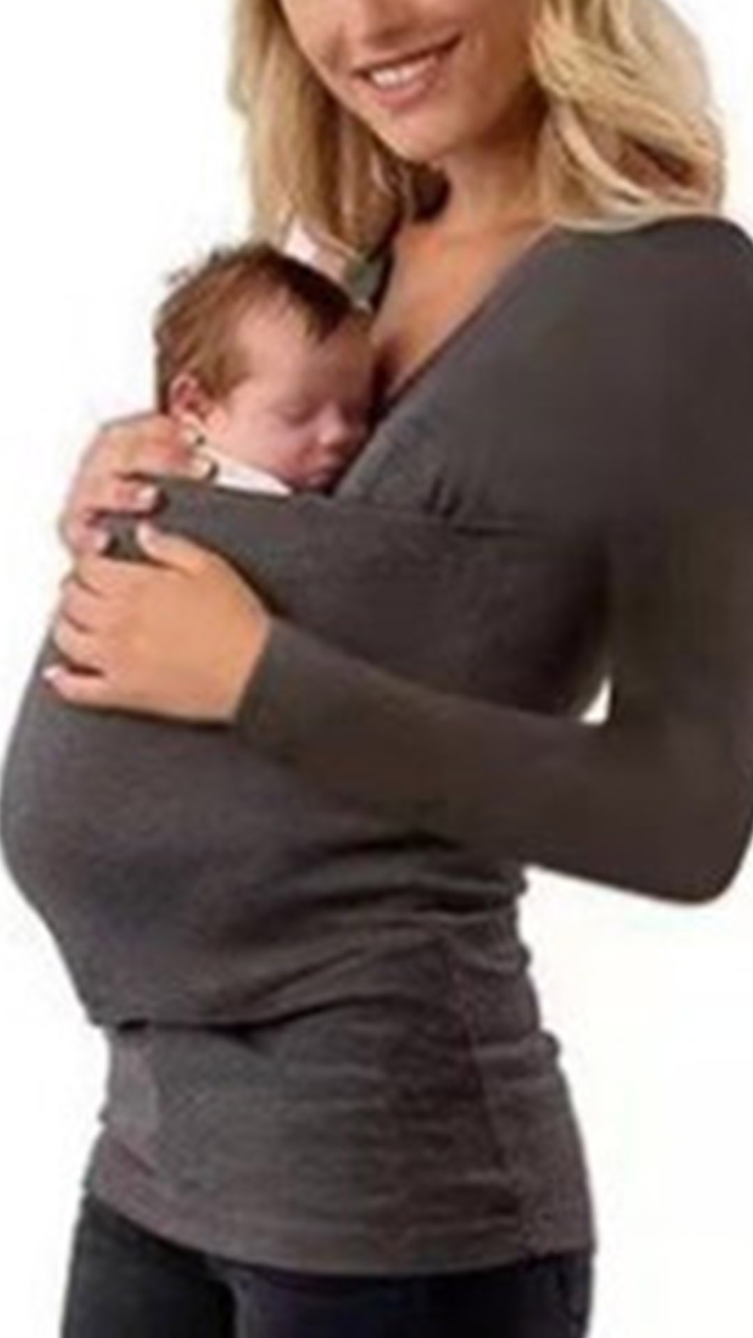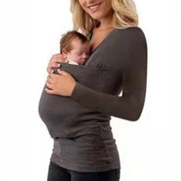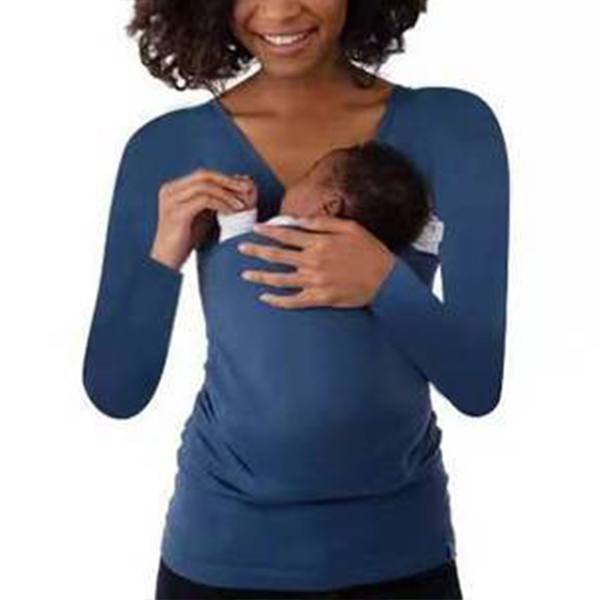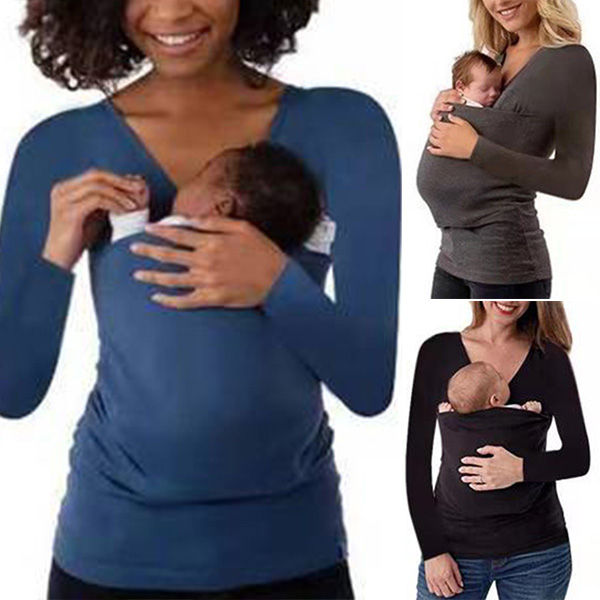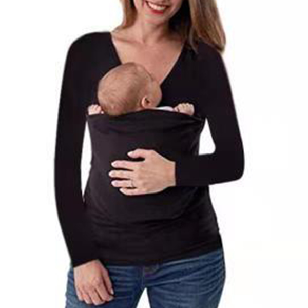 Women's Baby Carrier Soothe V Neck Kangaroo Long Sleeve Shirt