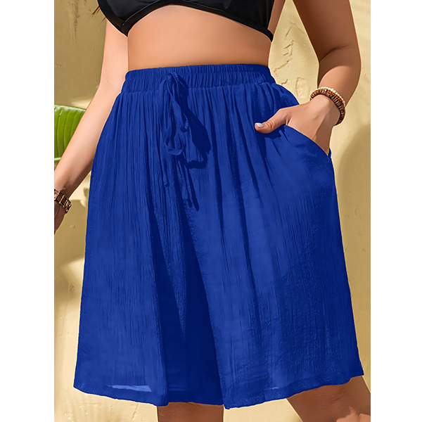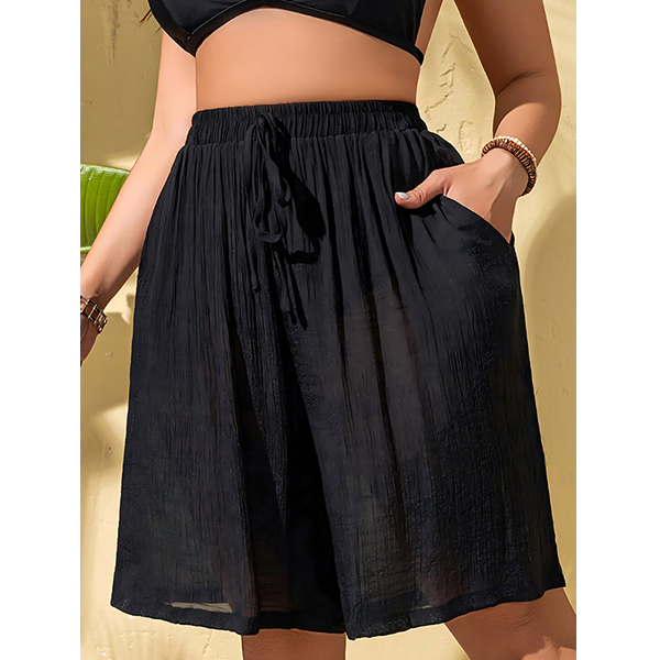 Women's Beach Cover Up Shorts Semi-Sheer Drawstring Elastic Waist Summer Swimwear Bottoms