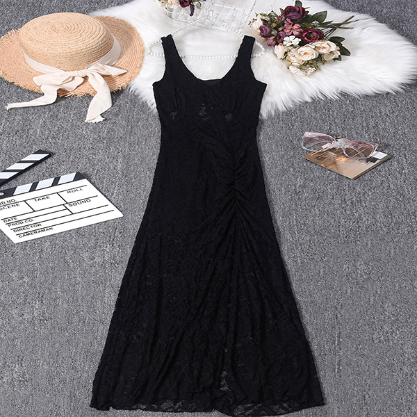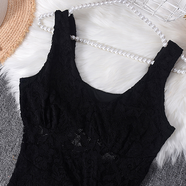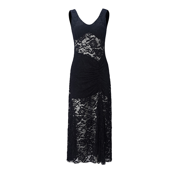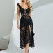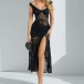 This dress features elegant black floral styling with luxurious lace construction and dramatic sheer illusion design for contemporary formal elegance. The bustier construction provides confident structure with flattering support whilst the side split offers dynamic movement and contemporary edge. Perfect for formal occasions, elegant styling, or sophisticated evening coordination.