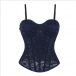 Women's Black Lace Corset Top - Sweetheart Neckline Sheer Waistier Cami Crop Top