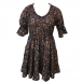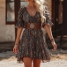 Women's Boho Dark Floral Mini Dress - V-Neck and Ruffled Puff Sleeves