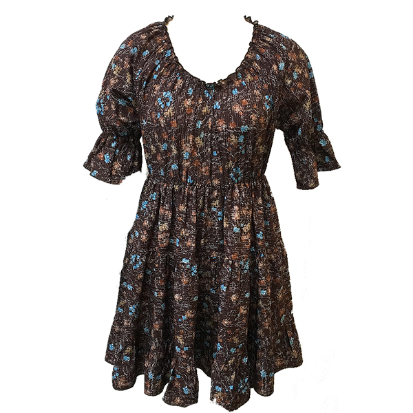 This enchanting dress features romantic boho styling with mysterious dark floral construction, graceful V-neck design and ruffled puff sleeves. Perfect for bohemian occasions, romantic styling, or sophisticated free-spirited coordination.