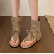 Women's Boho Flat Ankle Boot Sandals Faux Suede Fringe Tassel Thong Gladiator Shoes