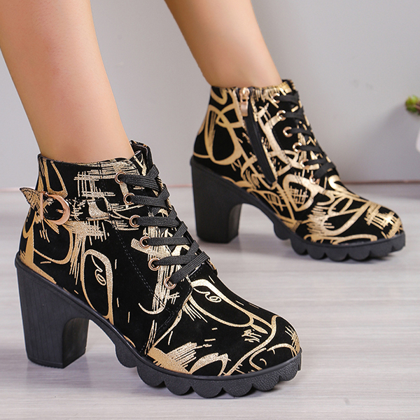 Women's Casual Chunky Heel Platform Ankle Boots