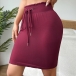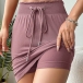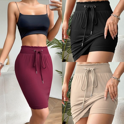 Women's Casual Sporty High-Waisted Skort- Elastic Waist Drawstring Mini Skirt with Safety Shorts
