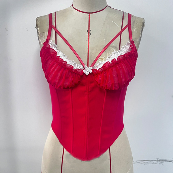 Women's Coquette Lace Trim Corset Top Ruched Sweetheart Strappy Cutout Bustier