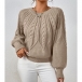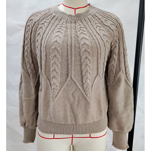 Women's Crew Neck Long Sleeve Cable Pattern Knitted Sweater