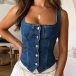 Women's Denim Corset Top Square Neck Button Down Bustier Crop Top Sleeveless Vest