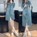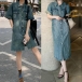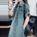 Womens Denim Skirt Dress Casual Retro Style with Short Sleeves Available in Long and Short Lengths