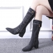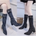 Womens Denim Stretchy Skinny High Butt Knee Mid Heel Boots