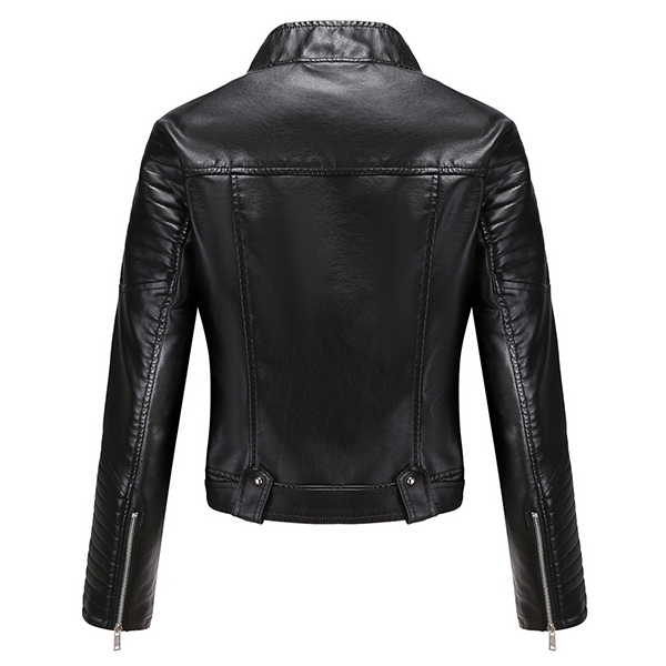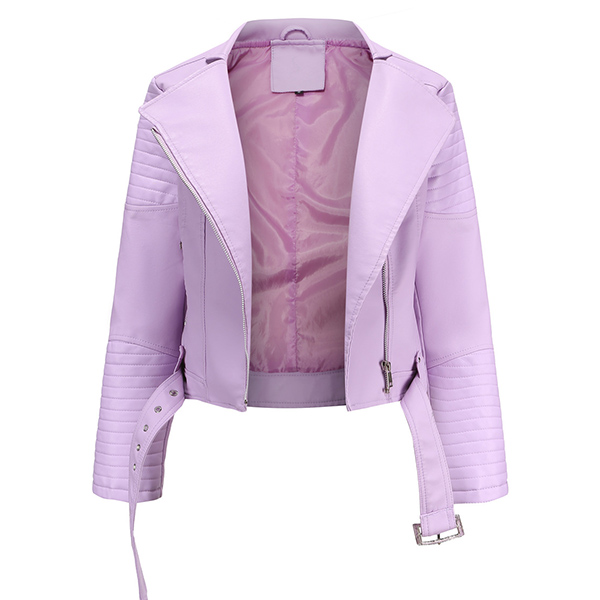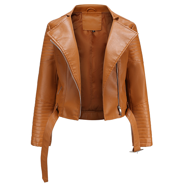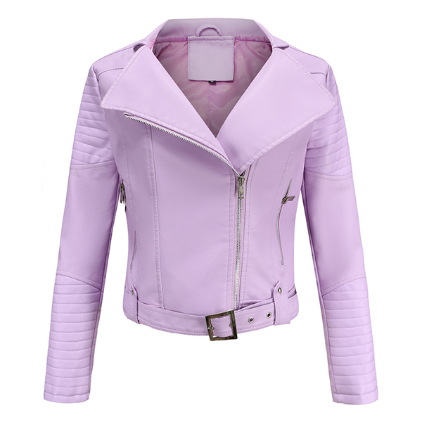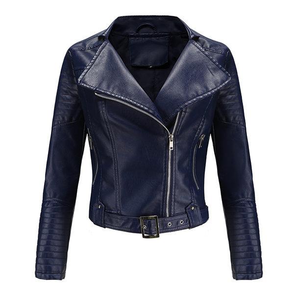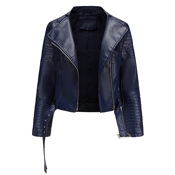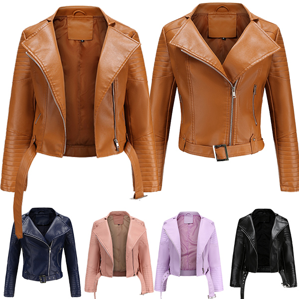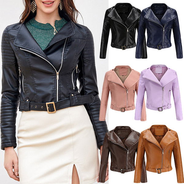 The faux leather makes this jacket a staple in every woman’s closet; It features asymmetrical center front zipper with big lapels. Front zipper closure paired with two lower zipper for viable storage and safekeeping; The outer shell is water resistant allowing for easy care. It is perfect to transition between seasons or to use as a layering piece.