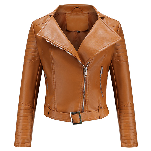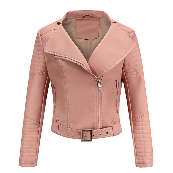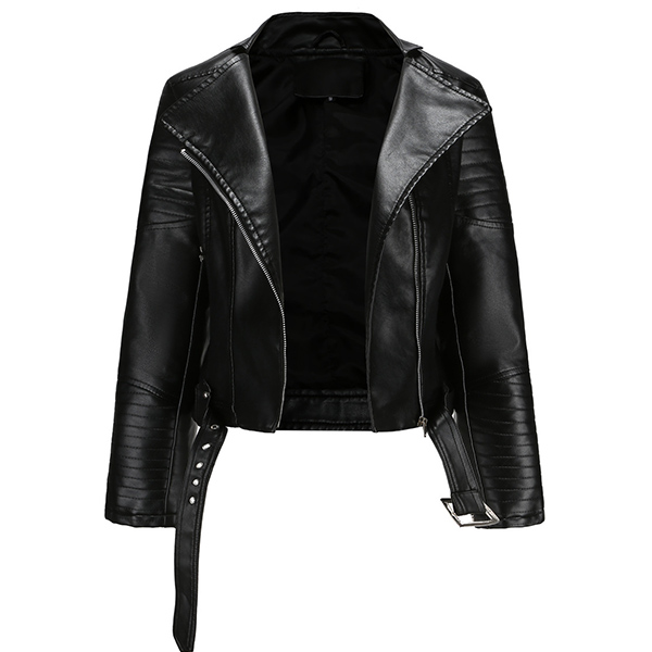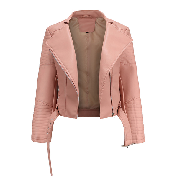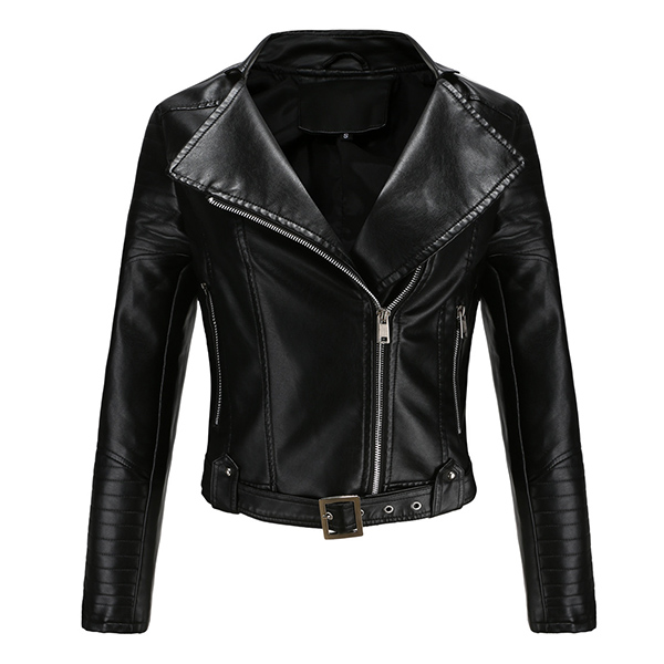 Women's Faux Leather Belted Motorcycle Jacket