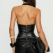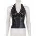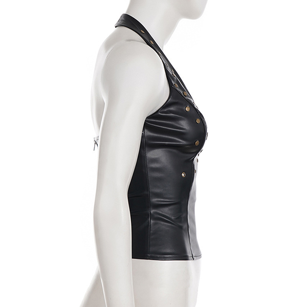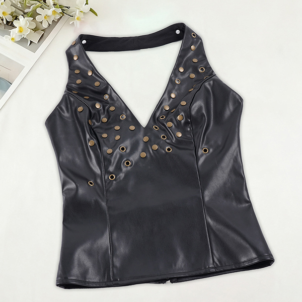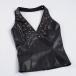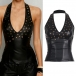 Women's Faux Leather Halter Top Studded Deep V-Neck Backless PU Leather Vest Clubwear