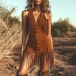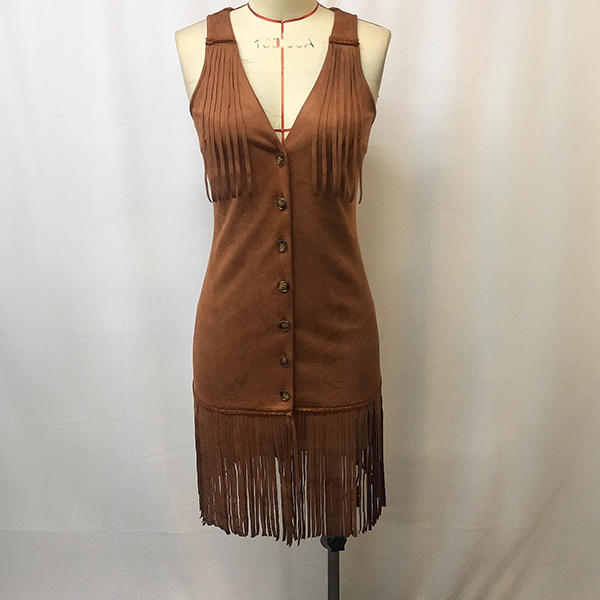 Women's Faux Suede Fringe Vest Dress - Western Button Down Mini Boho Cowgirl Dress with Tassels & V-Neck