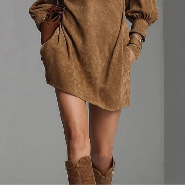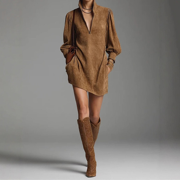 This mini dress features luxurious faux suede construction with contemporary half-zip styling and structured stand collar for modern textural elegance. Pair with boots and modern accessories for sophisticated casual appeal Perfect for contemporary occasions, casual styling, or sophisticated modern coordination.