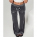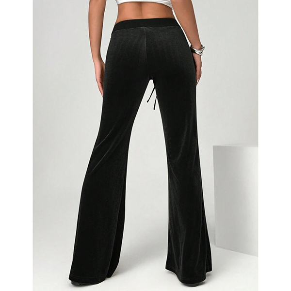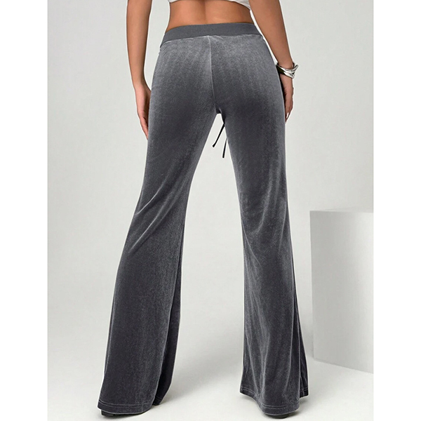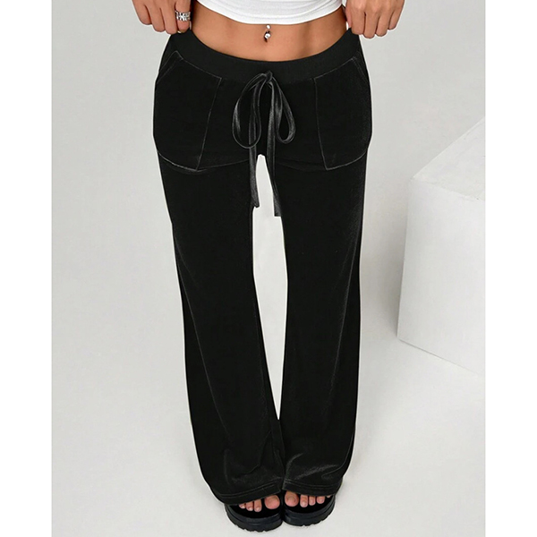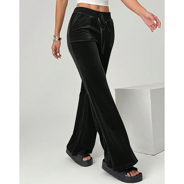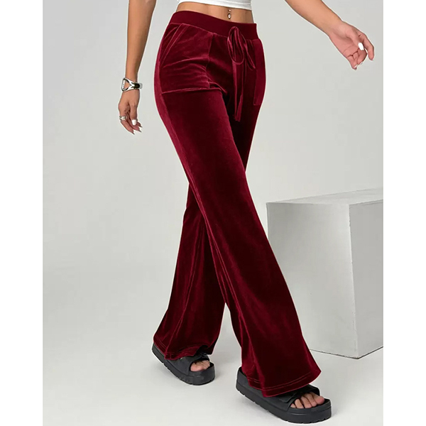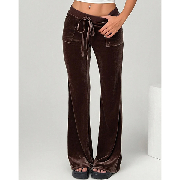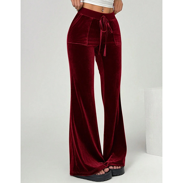 Women's High-Rise Velvet Trousers - Straight Leg Relaxed Fit with Front Pockets
