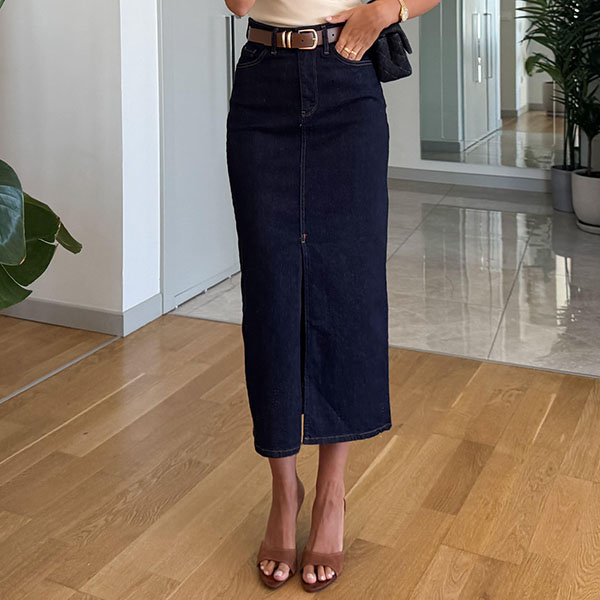 Upgrade your daily wardrobe with this versatile dark wash denim skirt. Combining the timeless appeal of jeans with the feminine silhouette of a maxi skirt, this piece is a foundational staple for the modern woman.