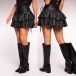 Turn heads and make a statement with this Mini Skirt. This piece perfectly balances edgy attitude with playful femininity. It features a flattering high-rise waistband that cinches your silhouette. The double-tiered ruffles add voluminous, flirty movement to every step, while the adjustable side drawstring detail provides a trendy, customized touch. Whether you're hitting the dance floor or styling a chic weekend look, this mini skirt is your new go-to for effortless, bold fashion.