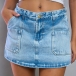 Women's Light Wash Denim Skort with Front Patch Pockets