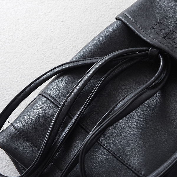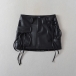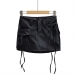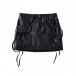 Women's Low Rise Faux Leather Cargo Mini Skirt with Strappy Tie Details with Inner Shorts