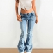 Women's Low Rise Flare Jeans Heart Shaped Pocket Vintage Bell Bottom Denim Pants