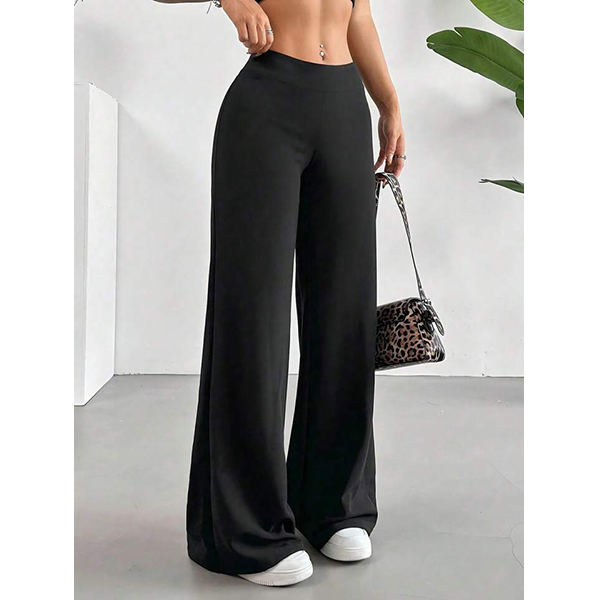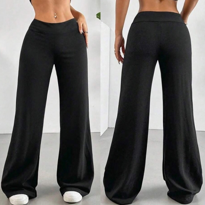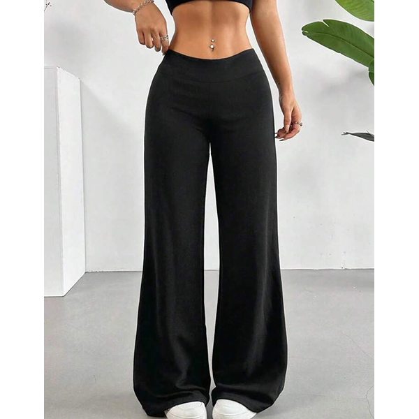 Meet your new go-to pants for effortless everyday style and unbeatable comfort. Designed with a sleek, seamless front and a comfortable pull-on wide waistband, these mid-rise pants offer a smooth, flattering silhouette without any bulky hardware. The fluid, wide-leg drape provides a relaxed fit that moves gracefully with you, making them perfect for everything from casual coffee runs to cozy days in. Crafted in a versatile black, these are the ultimate hybrid of loungewear comfort and streetwear chic.