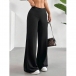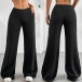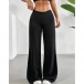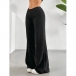 Women's Mid Rise Wide Leg Pants Pull-On Seamless Comfy Lounge Trousers Black