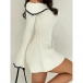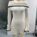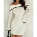This mini dress features alluring off-the-shoulder styling with textured ribbed knit construction and elegant contrast lace trim for contemporary romantic elegance. Perfect for romantic occasions, contemporary styling, or sophisticated evening coordination.