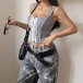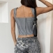 Women's Plaid Corset Crop Top Lace Up Front Sweetheart Bustier Y2K Coquette Gingham Tank Top