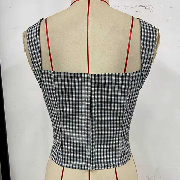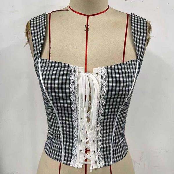 Meet your new favorite statement piece. The 'Picnic Punk' Bustier perfectly blends sweet coquette aesthetics with a hint of 90s grunge. Crafted from a classic plaid fabric, this crop top features a flattering sweetheart neckline and structured seams highlighted by crisp white piping to cinch and define your shape. The star of the show is the adjustable lace-up front, framed by delicate lace trim and finished with silver eyelets. Whether you tie it tight or leave it slightly loose, this top guarantees a perfect, head-turning fit.