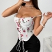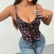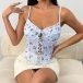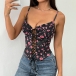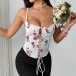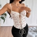 Women's Ruffle Sweetheart Neckline Front Lace-Up Corset Top Spaghetti Strap Bustier