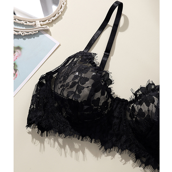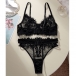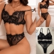 Women's Sexy Lingerie 2-Piece Set - Steel Ring Lace Bra and Hollow Lace Panties