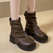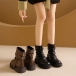 Bottes en velours à talon bas, mi-mollet, pour femmes
