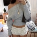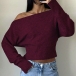 This chic top features contemporary slouchy one shoulder styling with dramatic dolman sleeves and comfortable knitted construction for modern relaxed elegance. Perfect for casual occasions, relaxed styling, or sophisticated contemporary coordination. Pair with high-waisted bottoms and casual accessories for sophisticated relaxed appeal.
