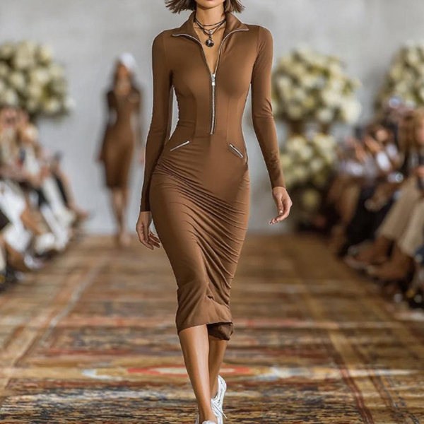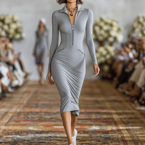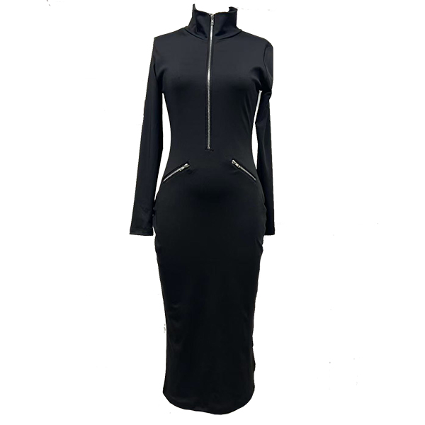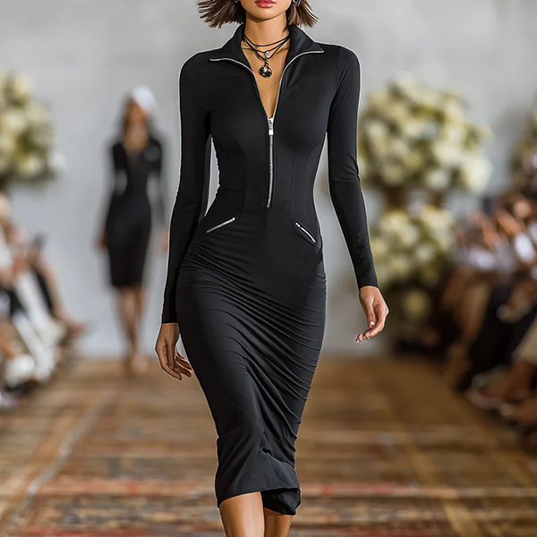 Elevate your everyday wardrobe with this sleek and versatile Bodycon Dress. It features a figure-hugging bodycon fit, standout silver-tone half-zipper at the neckline allows you to adjust your look—zip it up for a chic mock-neck style or zip it down for a plunging V-neck effect. Blending the comfort of activewear with the sophistication of a runway silhouette, this dress is designed for the modern woman on the go. Multi-colors avabile.