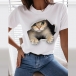 Women's T shirt Cat Graphic 3D Print Round Neck Tops 100% Cotton Basic Basic Top White