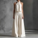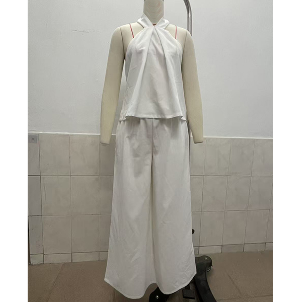 Embrace effortless summer elegance with this stunning two-piece co-ord set. Designed for the modern minimalist, this outfit features a chic halter-neck top with a sophisticated twisted detail that creates a beautiful, relaxed drape. It’s perfectly paired with dramatic, ultra-wide-leg pants that flow gracefully with every step. Whether you're strolling through a coastal town or heading to a stylish weekend brunch, this set is your shortcut to instant chic.