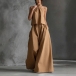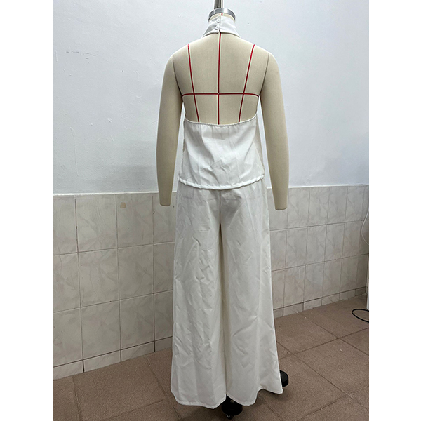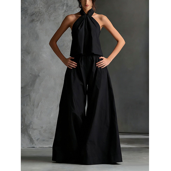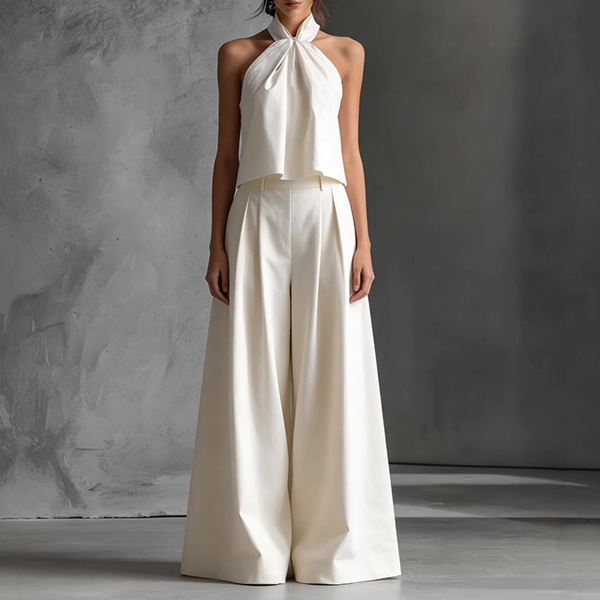 Women's Two-Piece Set Outfit -Halter Neck Top and Wide Leg Pants Set Summer Resort Wear