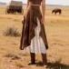 XXL : Skirt Length : 92cm (36.2"); Waist : 90cm (35.4");This vintage skirt features authentic western styling with luxurious faux suede construction and delicate lace patchwork for contemporary cowgirl elegance. Perfect for western occasions, cowgirl styling, or sophisticated country coordination.