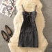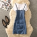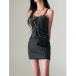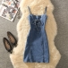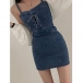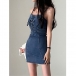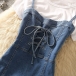 Women's Y2K Denim Mini Dress Spaghetti Strap Lace Up Front Bodycon Corset Jean Dress (Size Run Small)