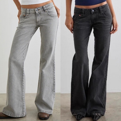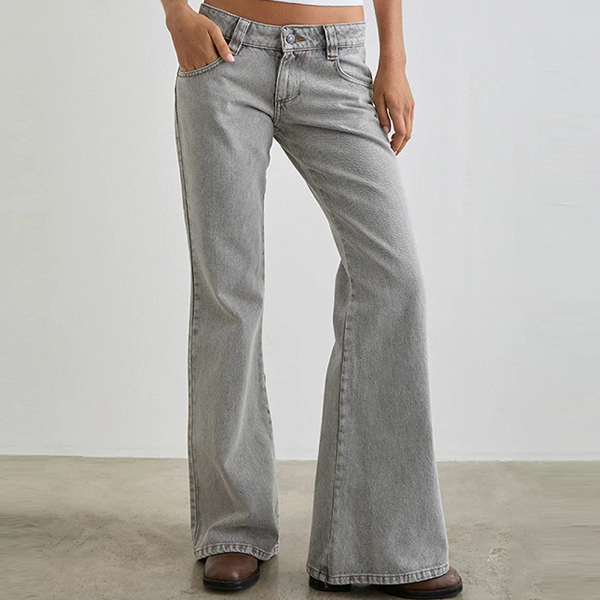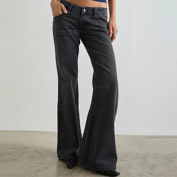 Channel your inner 90s supermodel with our Minimalist Low-Rise Flare Jeans. Designed for the effortless "model-off-duty" aesthetic, these jeans feature a true low-slung waist that perfectly highlights your midriff. The silhouette is expertly tailored to hug your hips before cascading into a dramatic, leg-lengthening flare that sweeps over your favorite footwear. Crafted from premium denim with authentic vintage washes in muted charcoal and light grey, they offer a worn-in, grunge-chic vibe from the very first wear. Keep it simple, sleek, and undeniably retro.